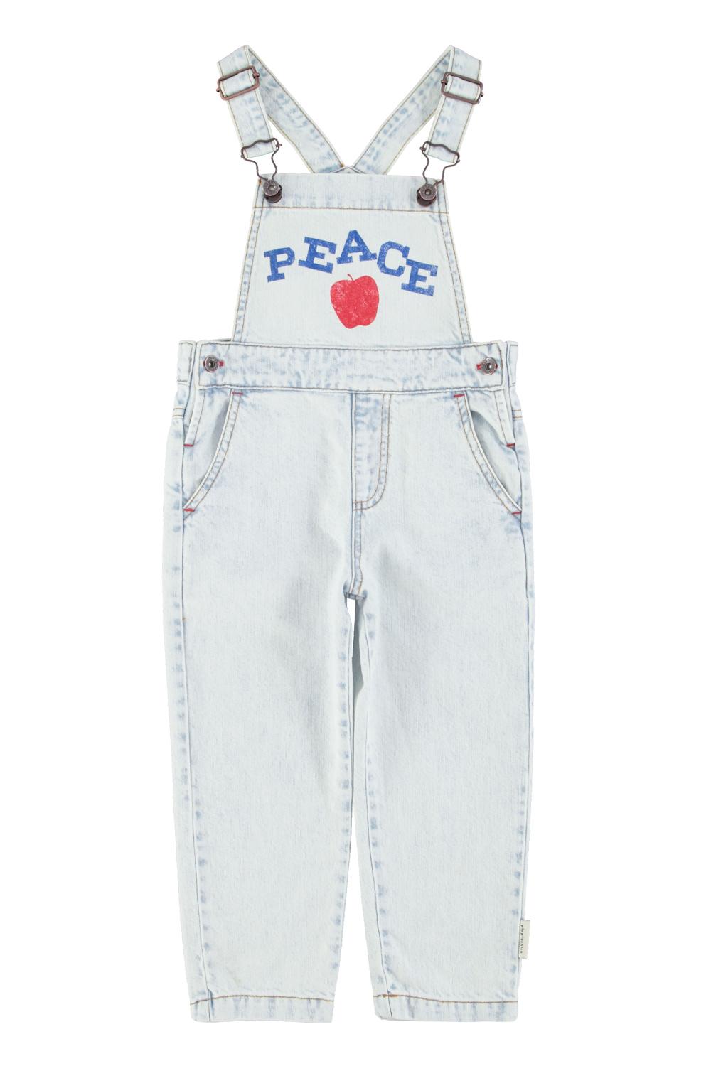 Piupiuchick,dungarees | washed light blue denim w/ "peace" print