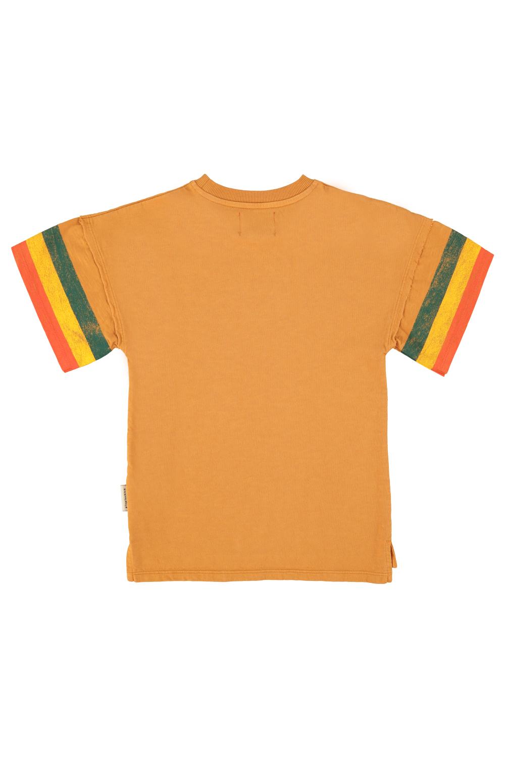 Piupiuchick,t-shirt dress | camel w/ multicolor stripes