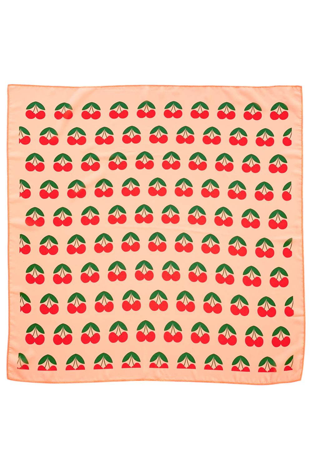 | silky bandana | coral w/ cherries allover |