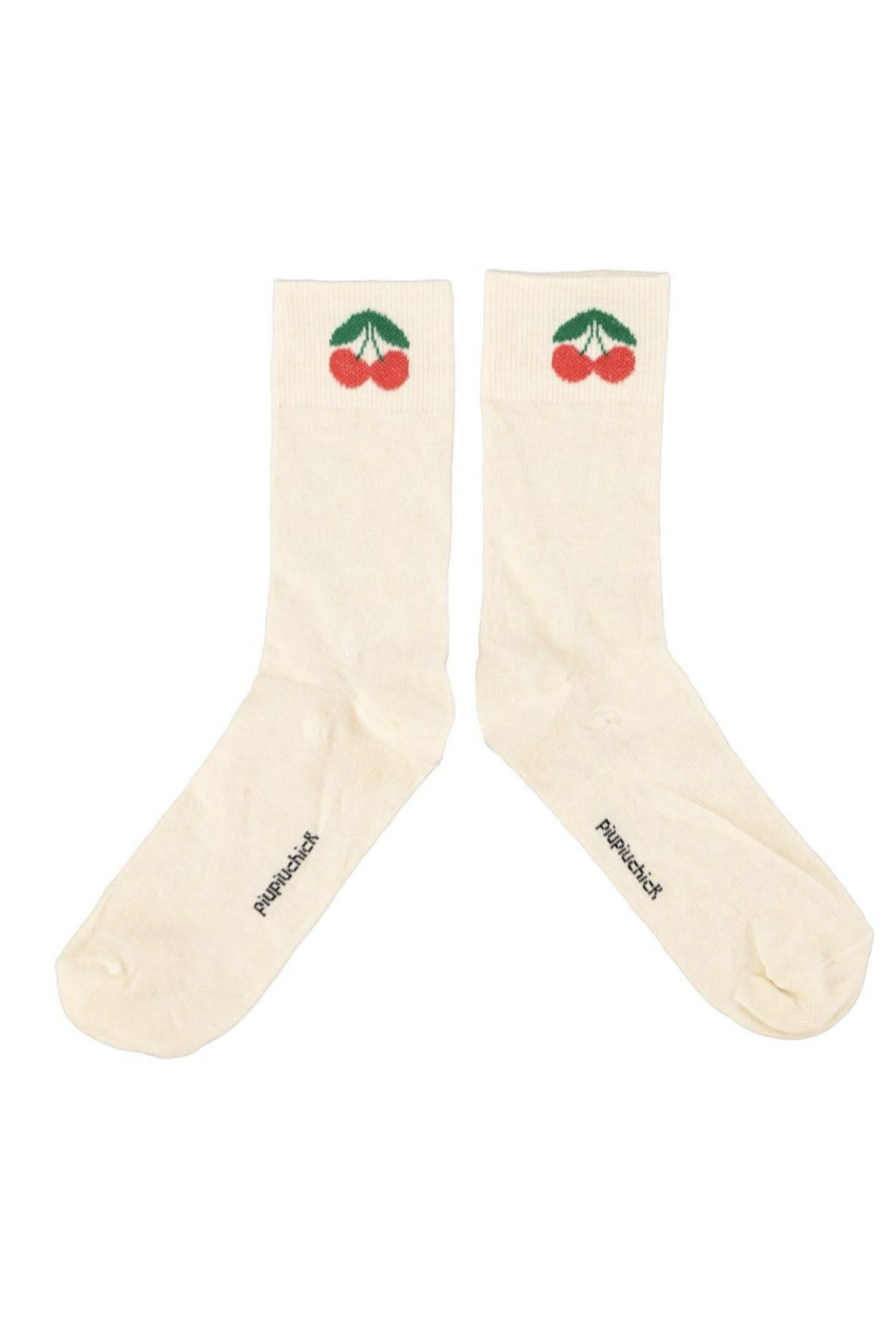 Piupiuchick,socks | ecru w/ cherry print