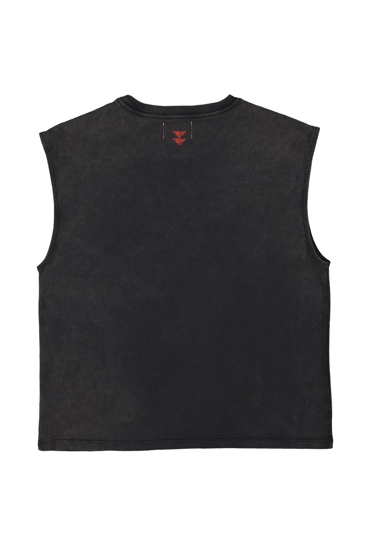 Sleeveless t-shirt w/ round neck | Washed black w/ "sisters dept" print