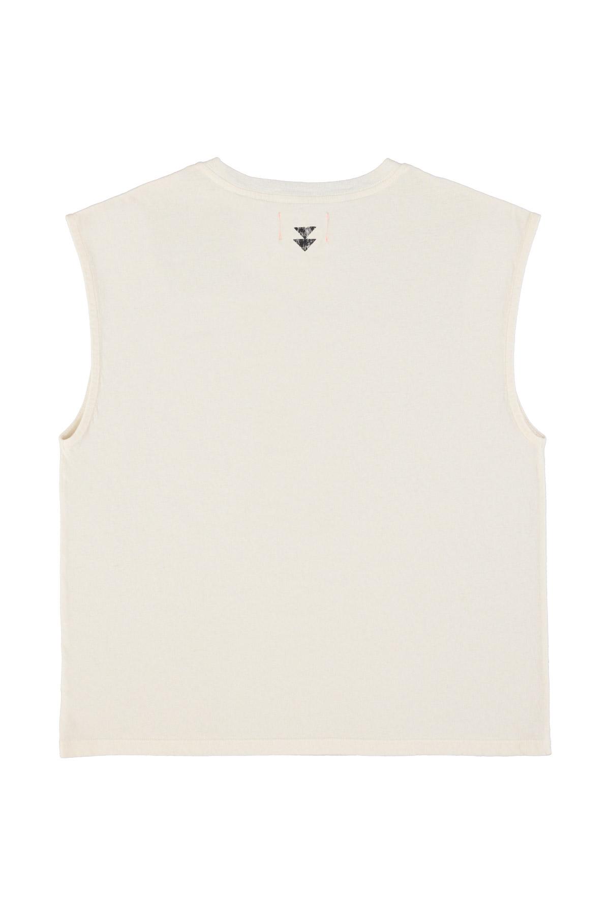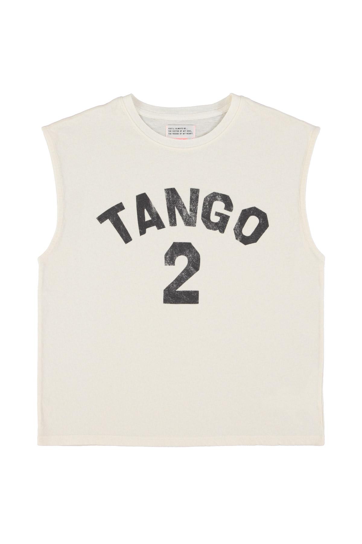 Sleeveless t-shirt w/ round neck | Ecru w/ "2 tango" print
