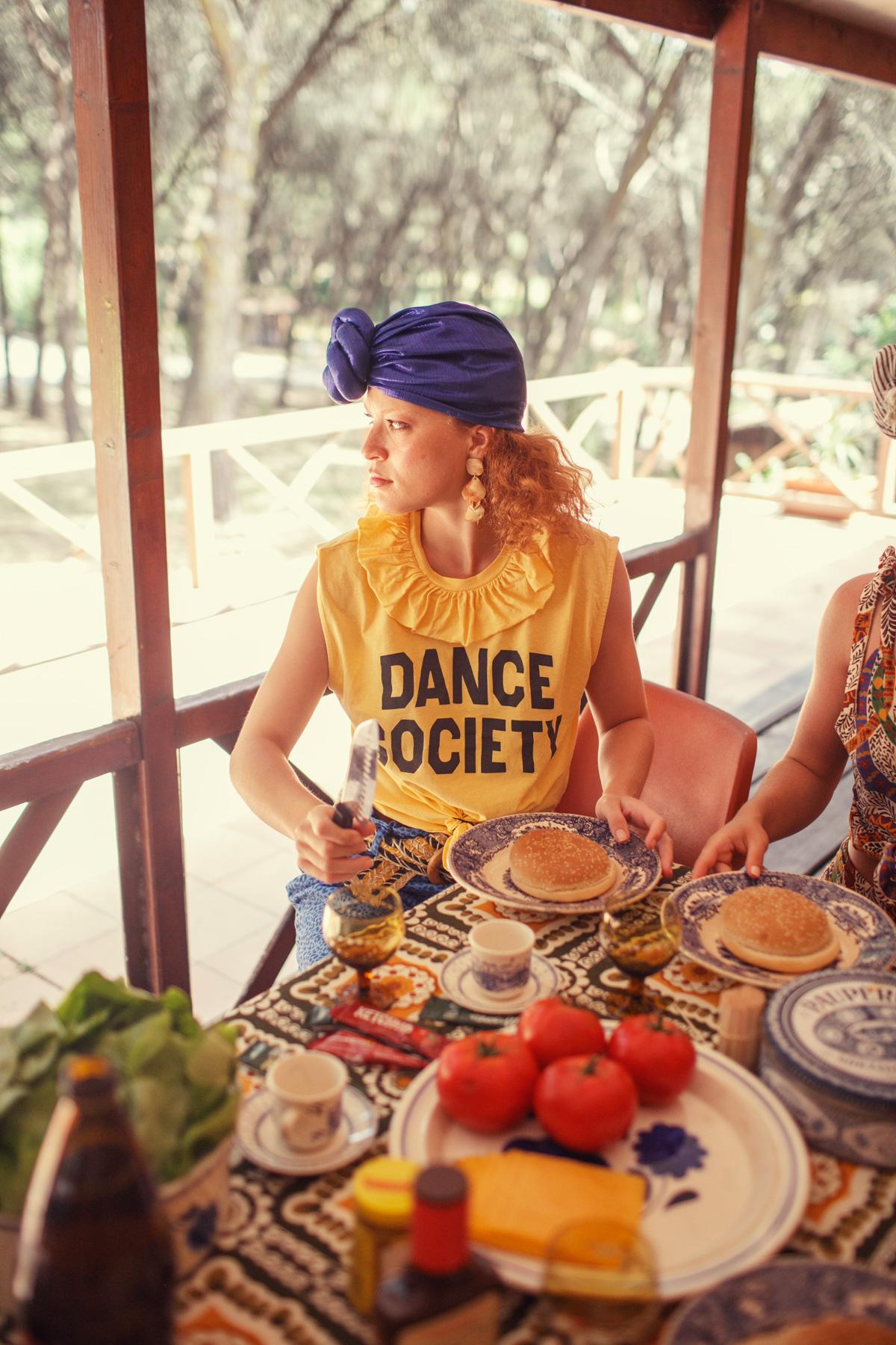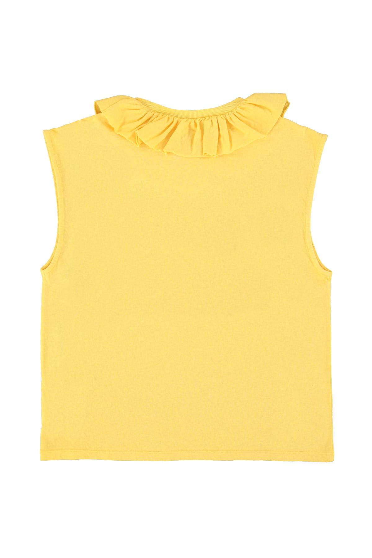 Sisters Department,"Sleeveless t-shirt w/ collar | Yellow w/ ""dance society"" print"