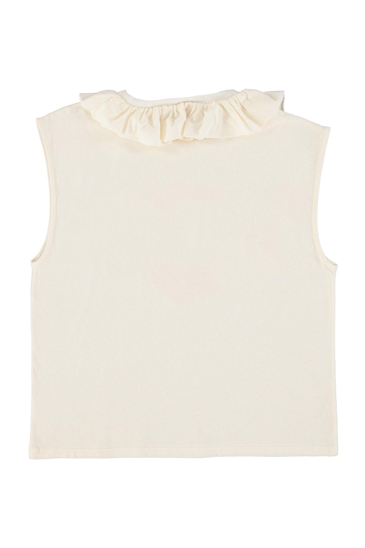 Sleeveless t-shirt w/ collar | Ecru w/ red lip print