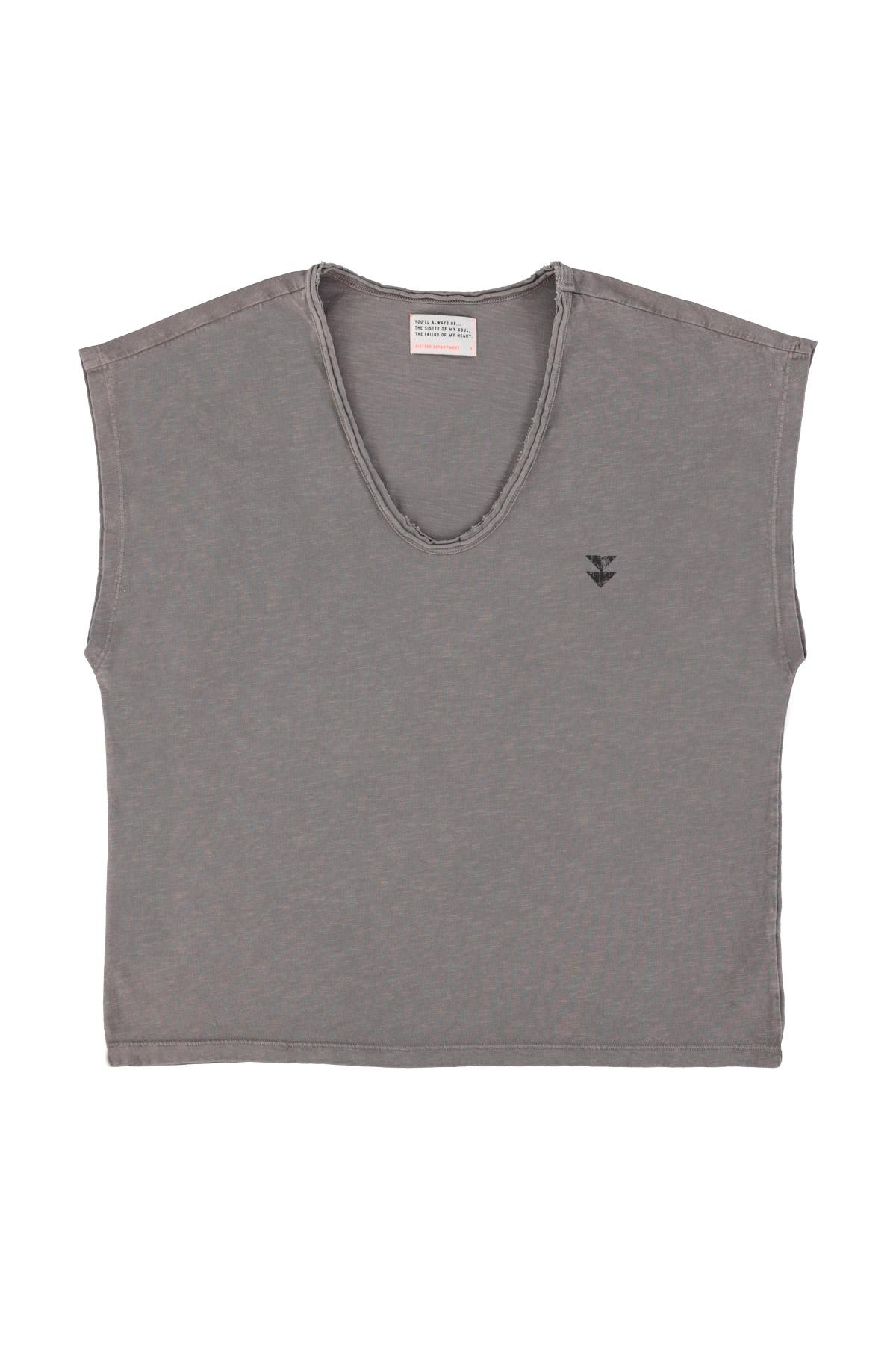 Sisters Department," Sleeveless t-shirt w/ deep round neck | Grey w/ ""choreographer"" print"