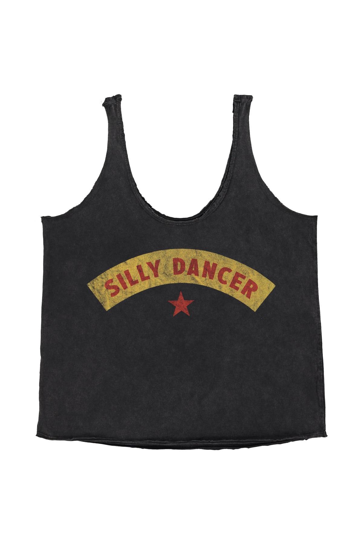 Top w/ v-neck | Washed black w/ "silly dancer" print