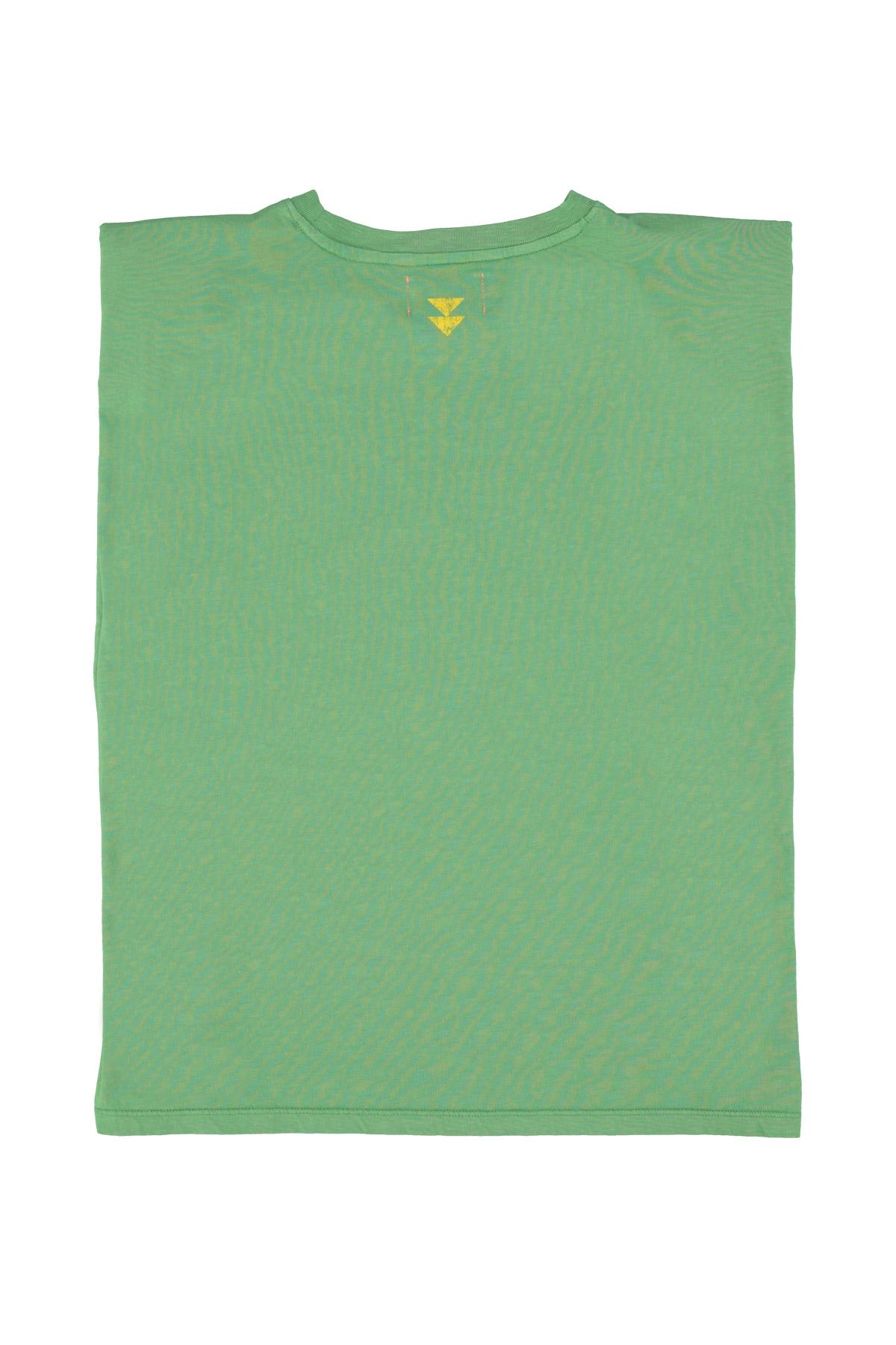 Sleeveless t-shirt w/ shoulder pads | Green w/ leopard print